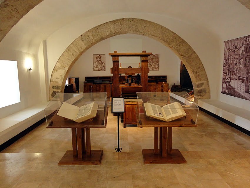 El recorrido histórico que nos propone el museo comienza en la denominada «Sala Gútenberg», en la que se representa fielmente un taller de impresión del siglo XV, con facsímiles impresos entre los que destaca la famosa Biblia de 42 líneas obra del propio Gútenberg editada en 1454 o los primeros libros impresos en Valencia (Obres e trobes en lahors de la Verge María, impreso por Lambert Palmar en Valencia en 1474 está considerada la primera obra literaria salida de una imprenta en nuestro país) además del Tirant lo Blanc (1490), todo ello junto a una réplica exacta de la prensa de madera que utilizó el maestro alemán, la «auténtica joya del museo», nos dicen.